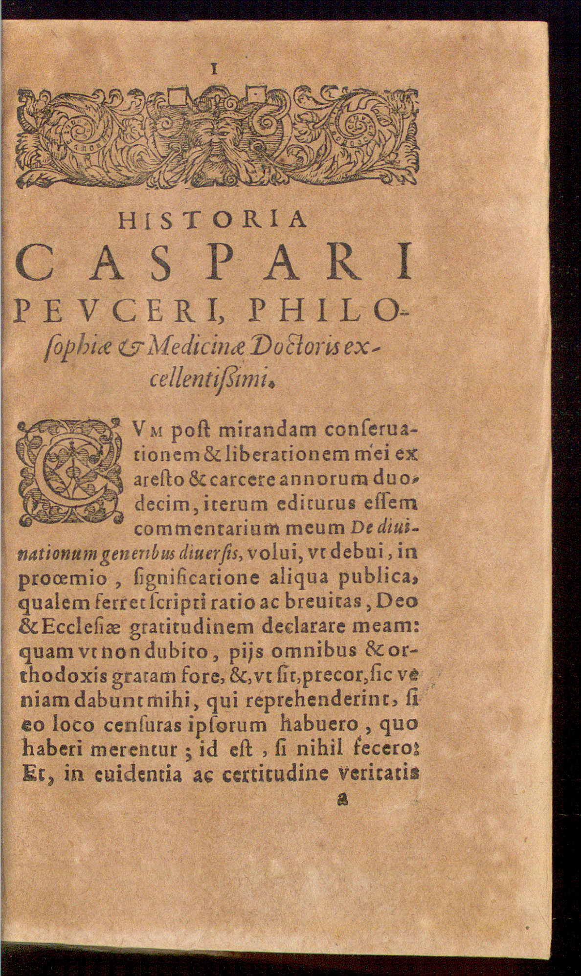 Casparis Peuceri Historia carcerum, et liberationis divinae / opera & studio Christophori Pezelii ... nunc primum in lucem edita ...