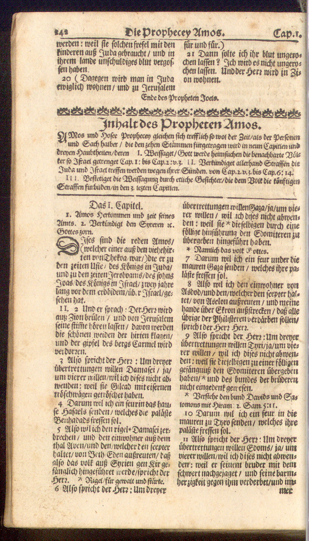 Biblia : das ist die ganze Heilige Schrift des Alten und Neuen Testaments : mit dem Inhalt über jedes Buch, Summarien über alle Capitel, Abtheilungen, Parallelis und abgesezten Versen / auss den Grund-Sprachen treulich und wol verdeutschet